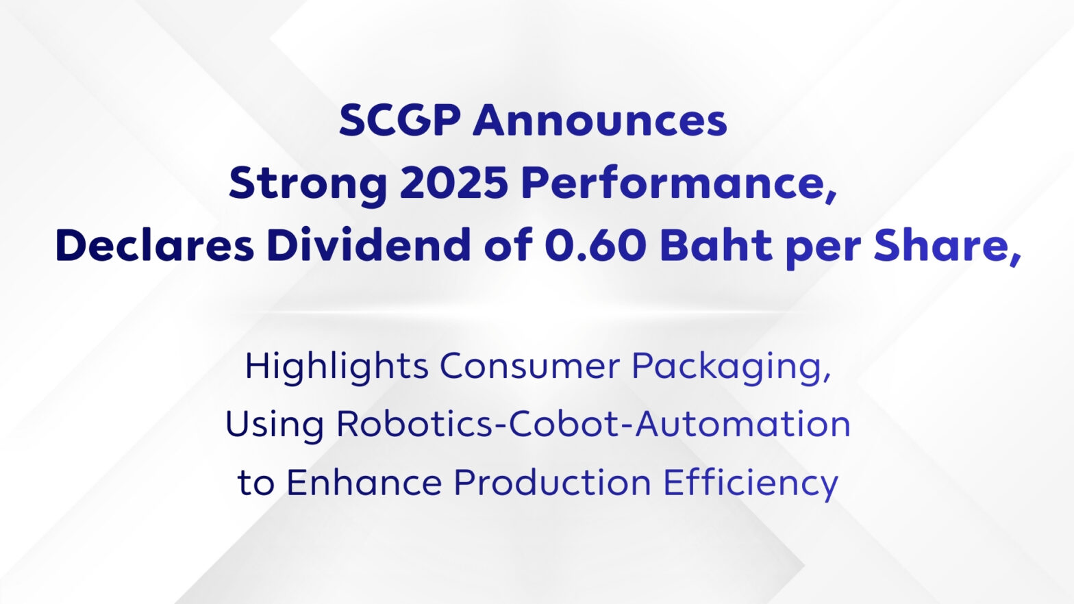 SCGP Announces Strong 2025 Performance, Declares Dividend of 0.60 Baht per Share, Highlights Consumer Packaging, Using Robotics-Cobot-Automation to Enhance Production Efficiency