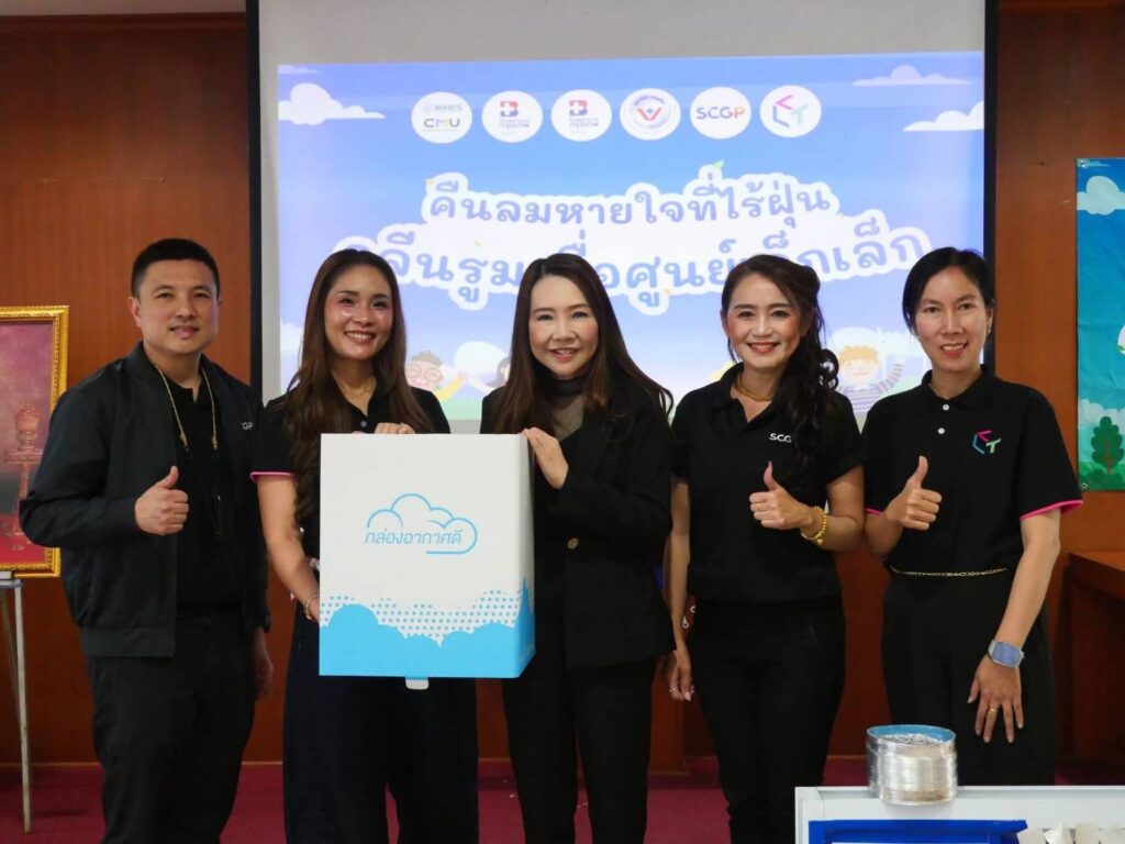 Siam Kraft Industry Company Limited in SCGP and a leader in environmentally conscious packaging, resources, and innovation, has joined forces with key partners in Northern Thailand, including Lalita PPO Company Limited (Lalita Packaging), Research Institute for Health Sciences, Chiang Mai University, Bangkok Hospital Chiang Mai, Bangkok Hospital Chiang Rai, and the Vejdusit Foundation under the patronage of Her Royal Highness Princess Galyani Vadhana. Together, they share a common goal of creating a safe environment to enhance the quality of life for children, who represent the future of the nation. Through this collaboration, the partners are implementing a project to deliver “Clean Air Boxes” and provide knowledge on coping with PM2.5 air pollution to 480 educational institutions, child development centers, childcare facilities, and preschools, covering a total of 890 rooms across Chiang Mai, Chiang Rai, Lamphun, and Mae Hong Son provinces.