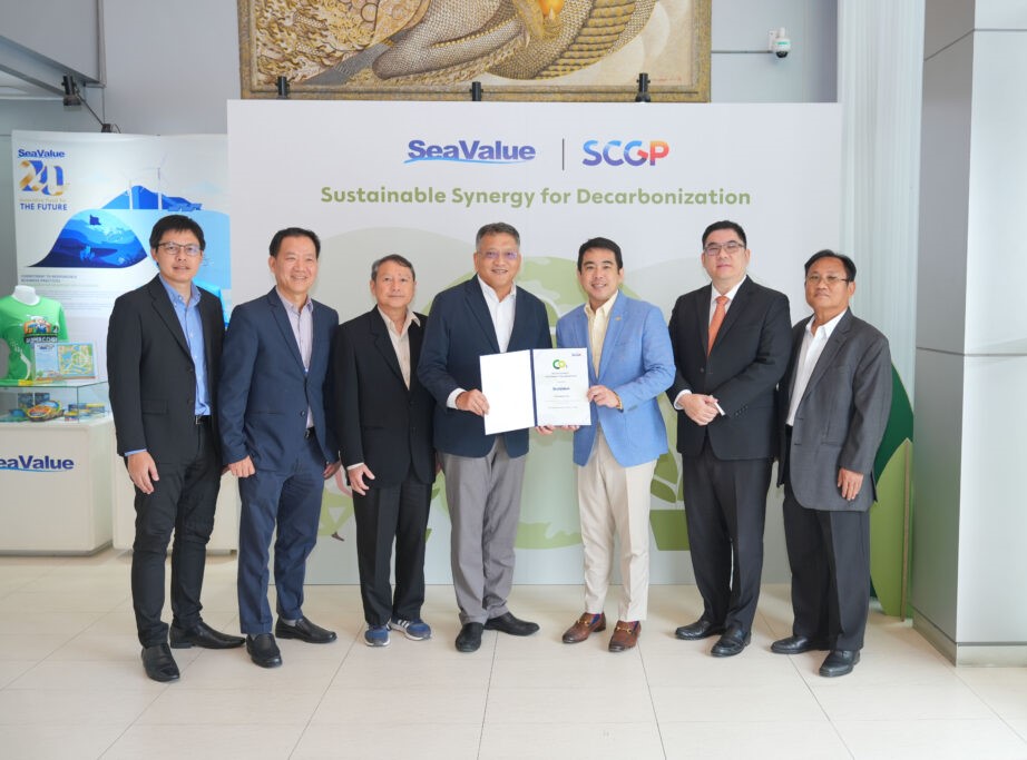 SCG Packaging Public Company Limited, or SCGP, represented by Mr. Ekaraj Niroj, Chief Marketing Officer, and Sea Value Public Company Limited, or Sea Value, represented by Mr. Amornphan Aramwatananont, Chief Executive Officer, joined a strategic partnership to achieve Net-Zero emissions by 2050. The collaboration focuses on promoting sustainable packaging, including packaging identified with the Private Declaration Label for the Carbon Footprint of Products (CFP) certified by SCGP, while advancing logistics solutions through the introduction of electric trucks (E-Truck) for product transportation. This initiative enhances Sea Value’s efficiency in managing Scope 3 emissions, helping reduce greenhouse gas emissions across its value chain and driving long-term business growth in line with environmental and social responsibility.