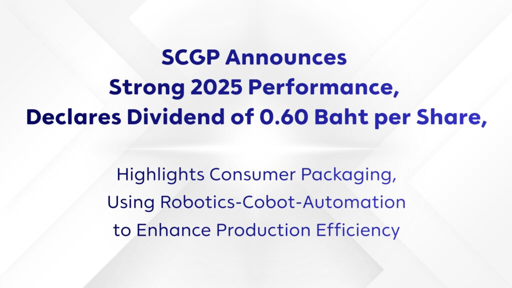 SCGP announced strong operating results for 2025, achieving total revenue from sales of Baht 124,374 million, EBITDA of Baht 17,210 million, and profit for the year of Baht 4,069 million. The performance was driven by continued growth in domestic consumption and exports, together with improved cost management efficiency. The Company plans to pay a dividend of 0.60 Baht per share. For 2026, SCGP has set a total investment budget of Baht 10,000 million and an EBITDA target of Baht 18,300 million. SCGP will continue to advance its strategy to expand consumer packaging businesses, integrate production across the entire value chain, exercise disciplined cost management, and enhance manufacturing efficiency through the adoption of robots, collaborative robots (cobots), and automation systems to strengthen competitiveness and deliver integrated solutions that meet customer needs.